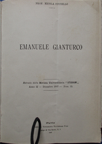 La pubblicazione degli atti del convegno di studi tenutosi ad Avigliano nel novembre 2007 costituisce il momento conclusivo dell’intenso programma di celebrazioni, organizzato dall’Amministrazione comunale e finanziato dalla Regione Basilicata, per ricordare Emanuele Gianturco in occasione del 150° anniversario della sua nascita e del 100° anniversario della sua morte.